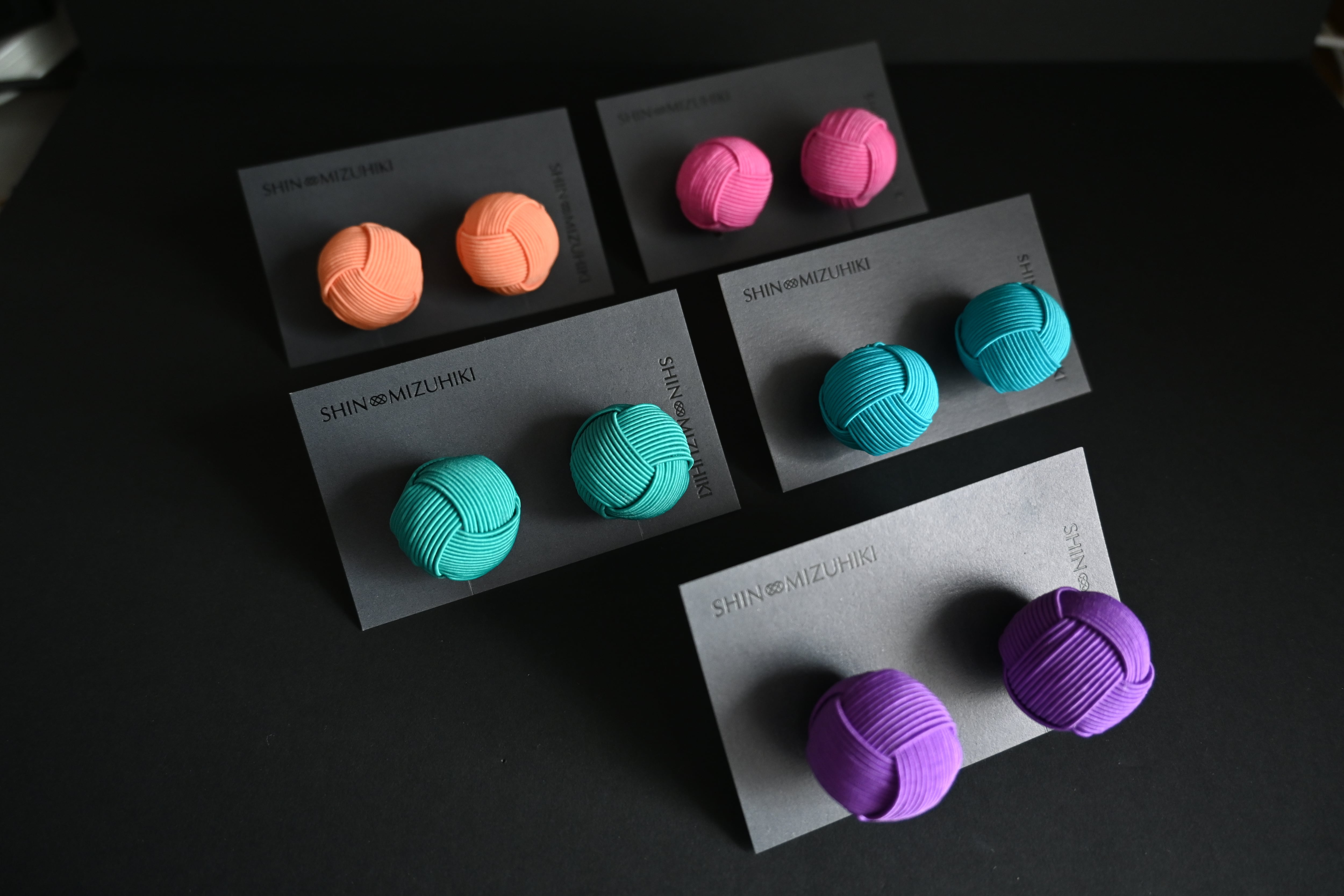 モダンで洗練されたデザインのイヤリングです。鮮やかな色たちの水引が、繊細に編み込まれて球体を形作り、軽やかな存在感を放ちます。伝統と現代の融合を感じさせるデザインは、カジュアルからフォーマルまで幅広いスタイルにマッチします。