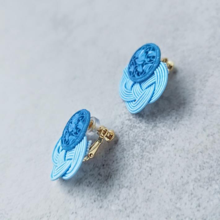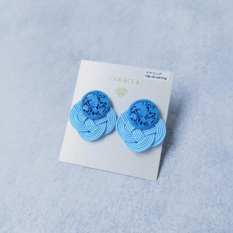 イタリアヴィンテージボタンと水引あわじ結びのイヤリング《水色》