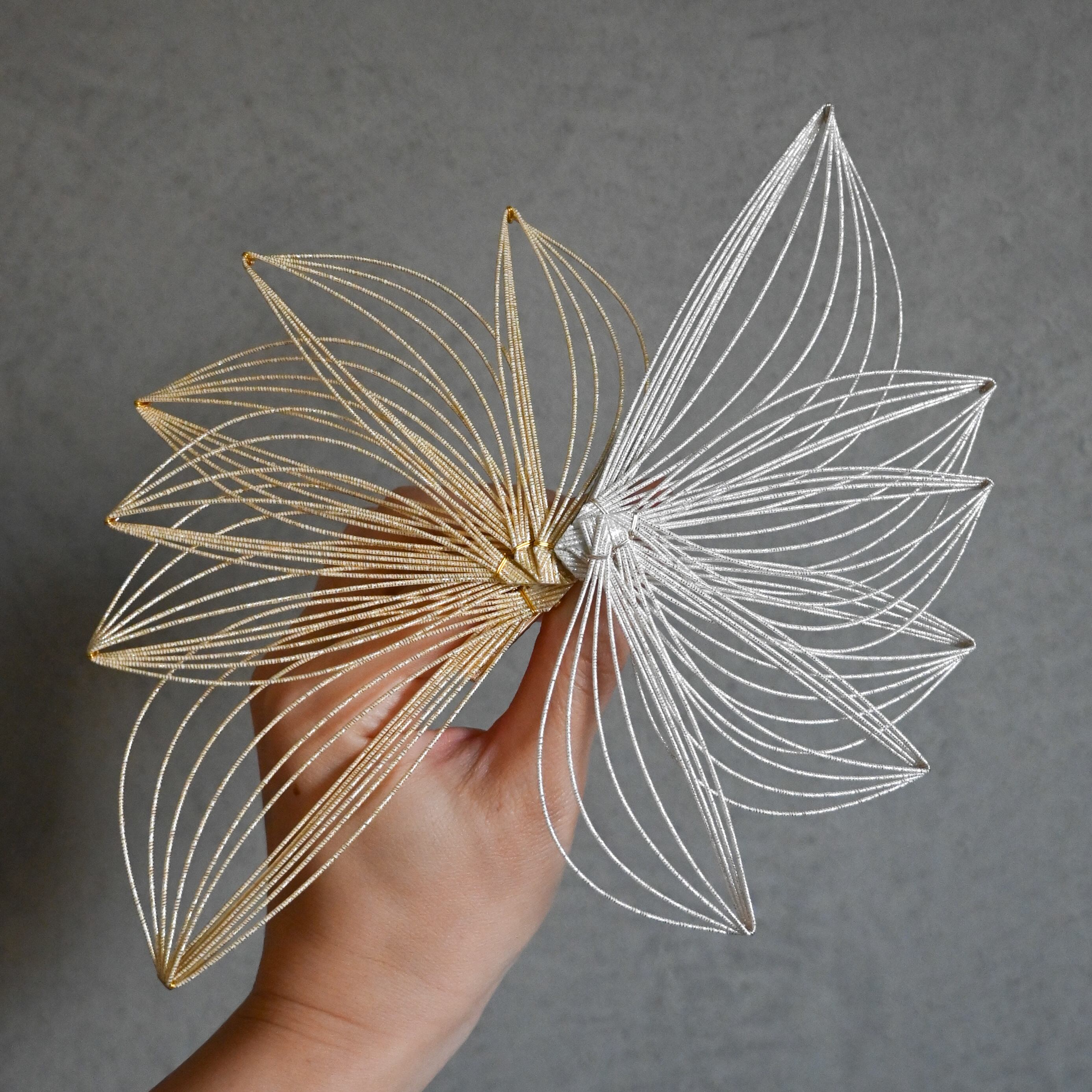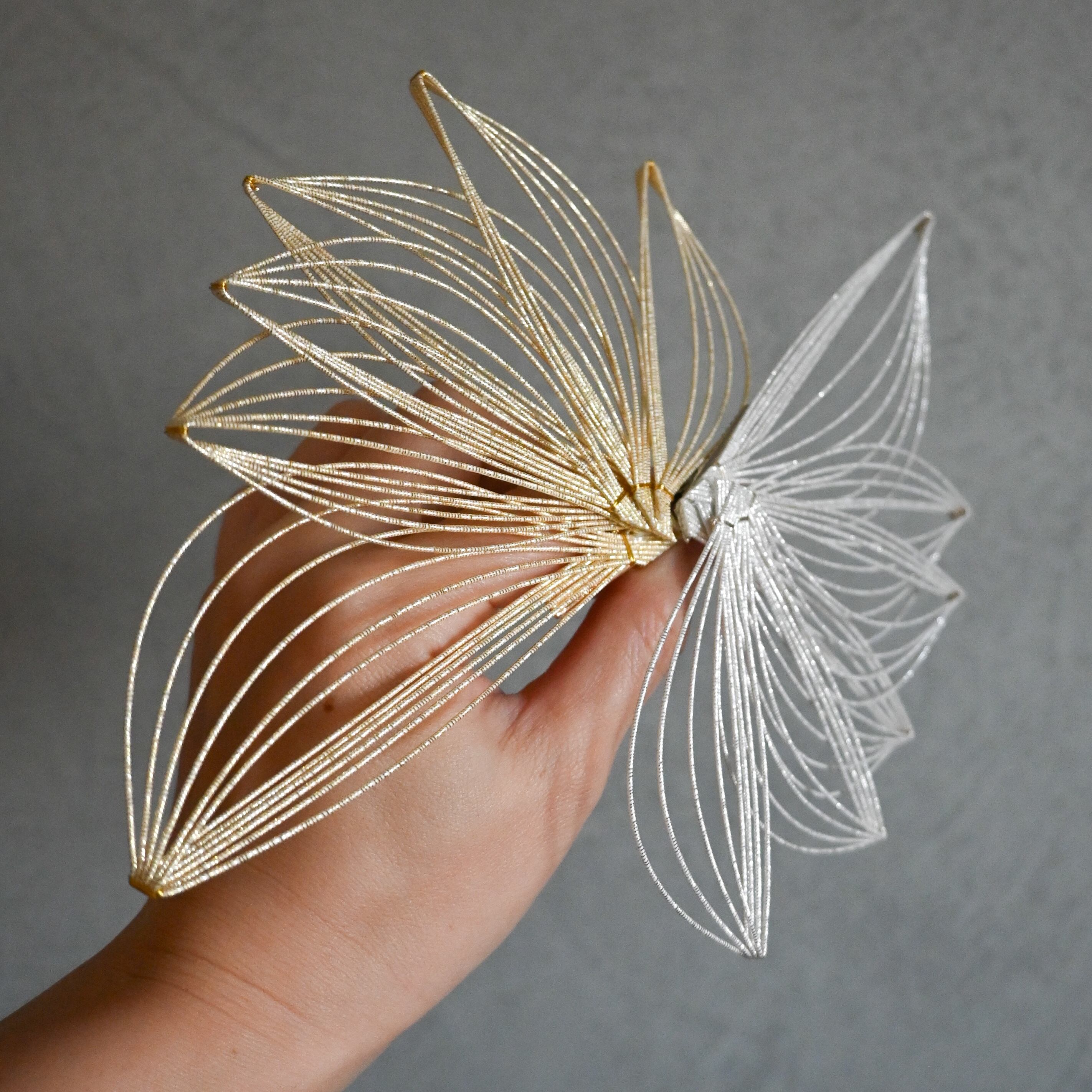 伝統的な日本の装飾技法「水引」を用いて作りました。