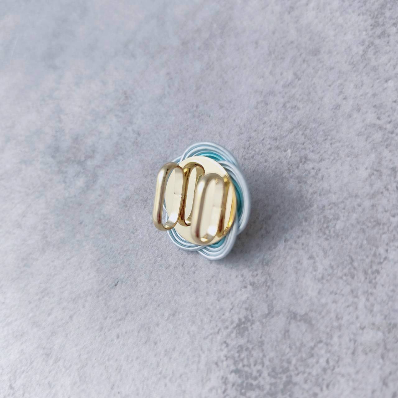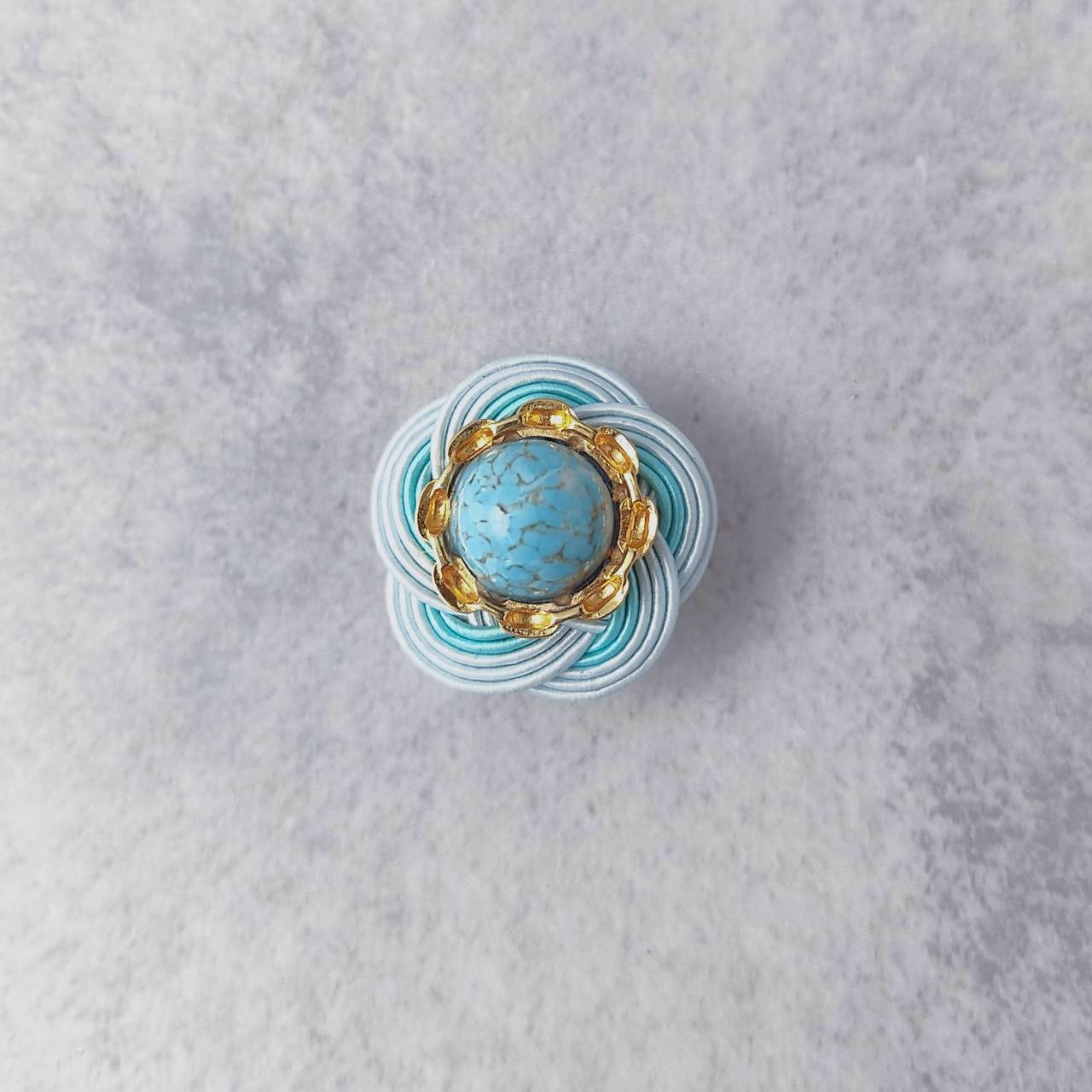 イタリア製のヴィンテージボタンと、水引の梅結びを組み合わせた一点物帯留めです。