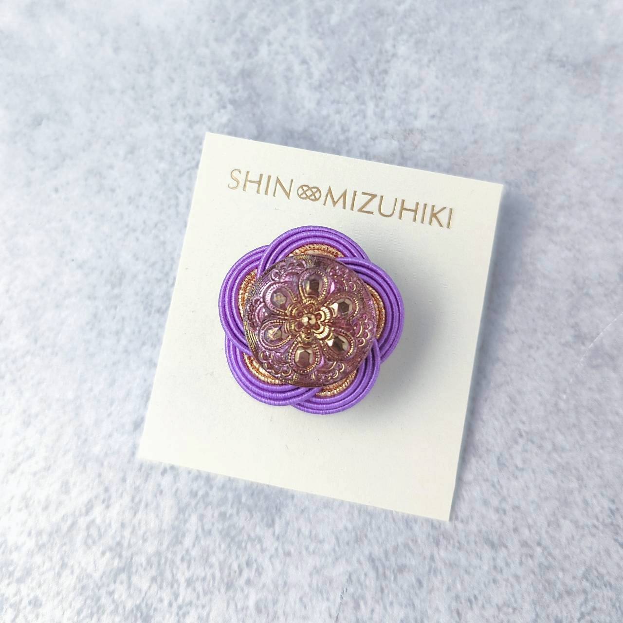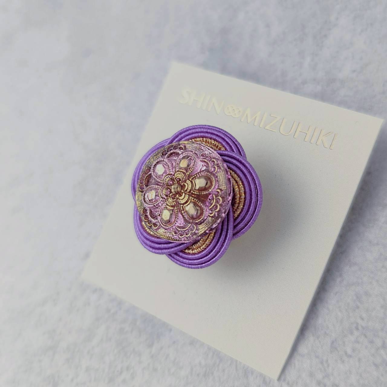 ・水引とヴィンテージボタンの組み合わせで華やかな印象