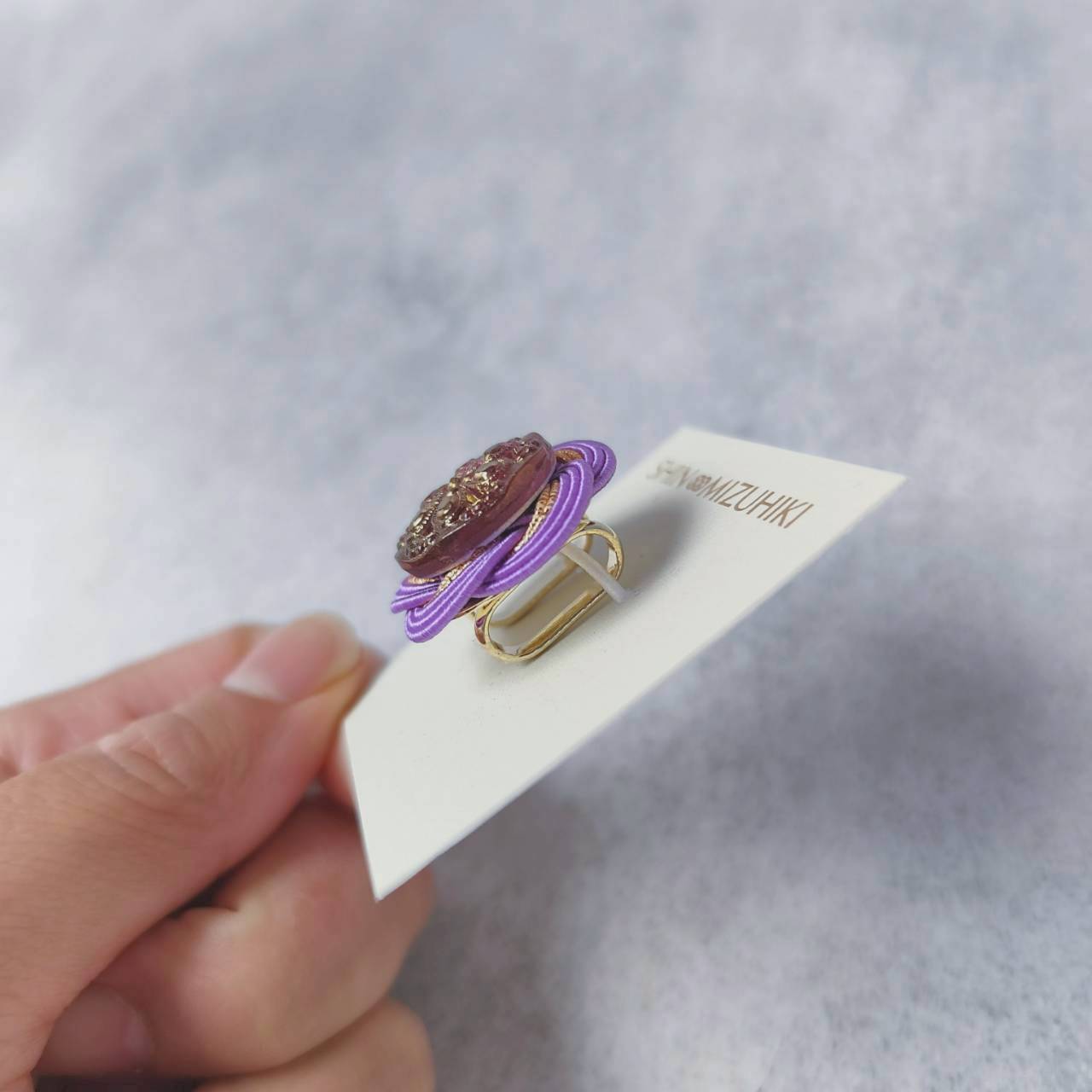 水引とヴィンテージガラスボタンが織りなす、小さなアートの世界をどうぞお楽しみください。
