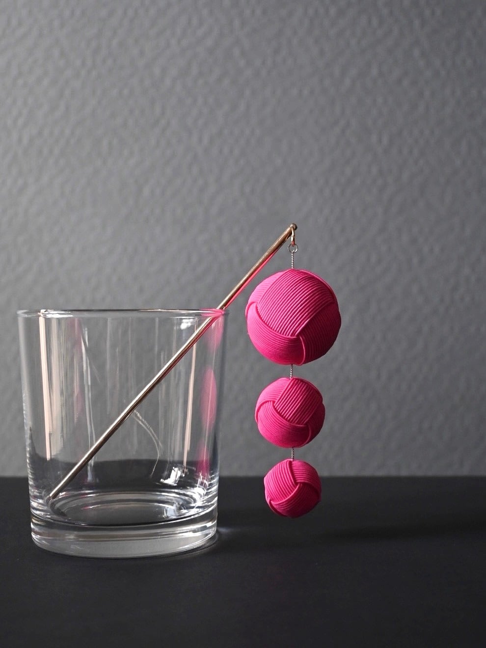 洗練された美しさを纏った水引玉結び簪。モンキーノットというノット結びで丁寧に仕上げられており、どんなシーンでも華やかさを引き立てます。エレガントな印象を与えるアイテムです。
