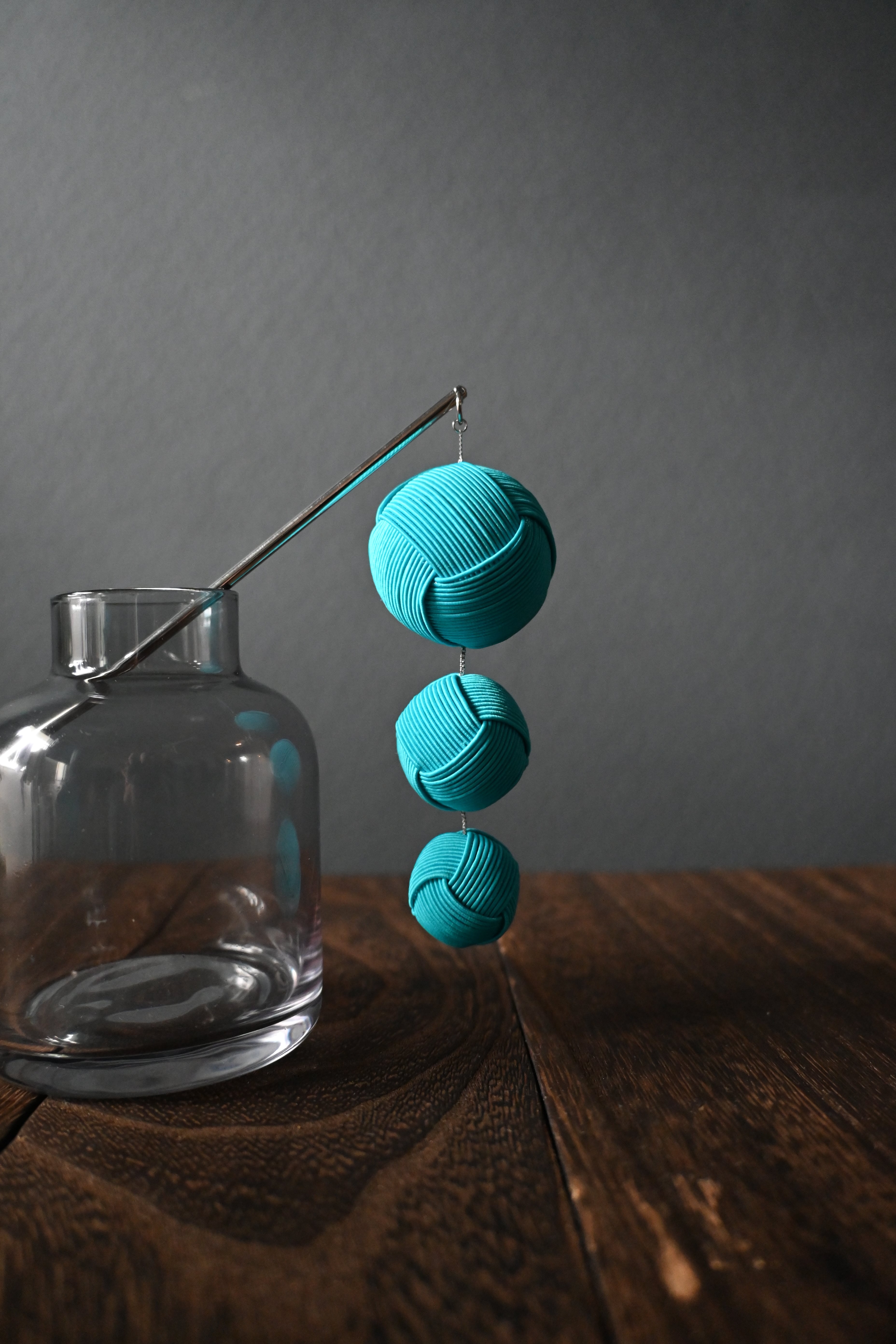TAMA.KANZASHI/3連水引玉結び簪/ターコイズブルー