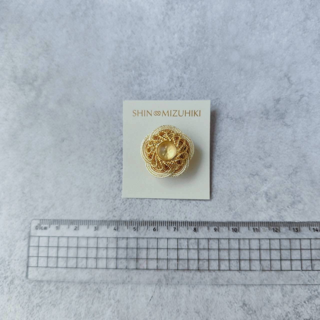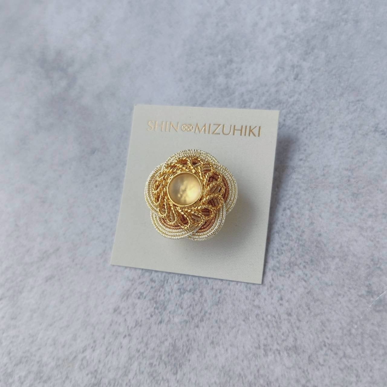 2色の金の水引が織りなす、気品と華やぎを帯まわりに添える一点物の帯留めです。