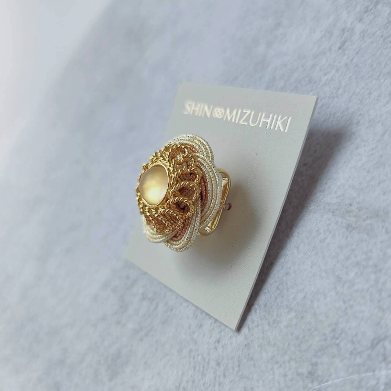 中央には、どこか懐かしさと温かみを感じさせる日本のヴィンテージボタンをあしらい、まるで月のようにやさしく輝きます。
