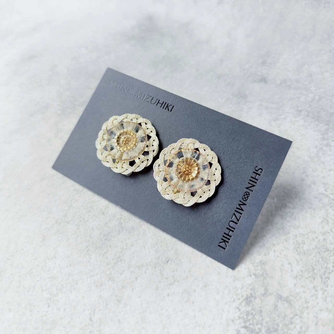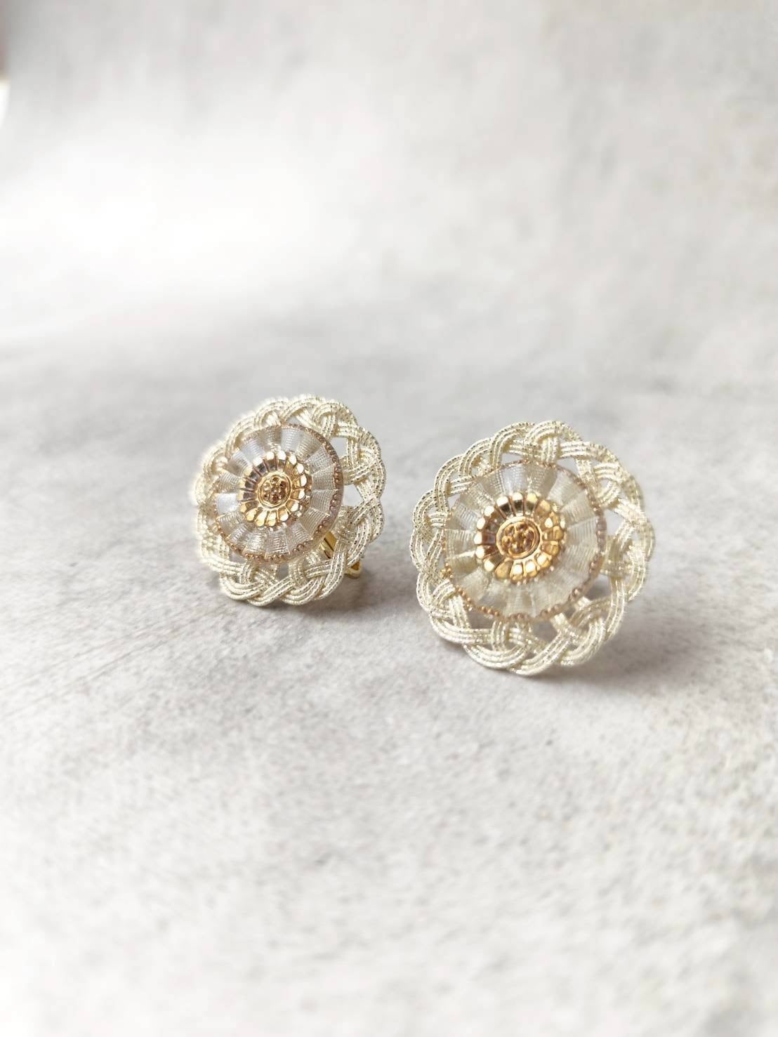 ⑥ KESAブロッサム/イヤリング ドイツヴィンテージボタンと袈裟結びのイヤリング