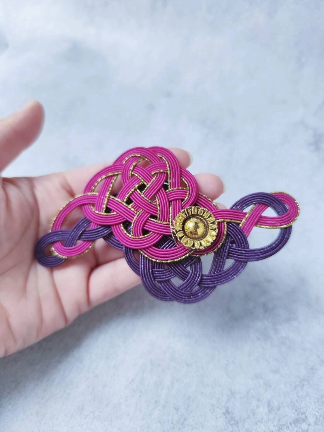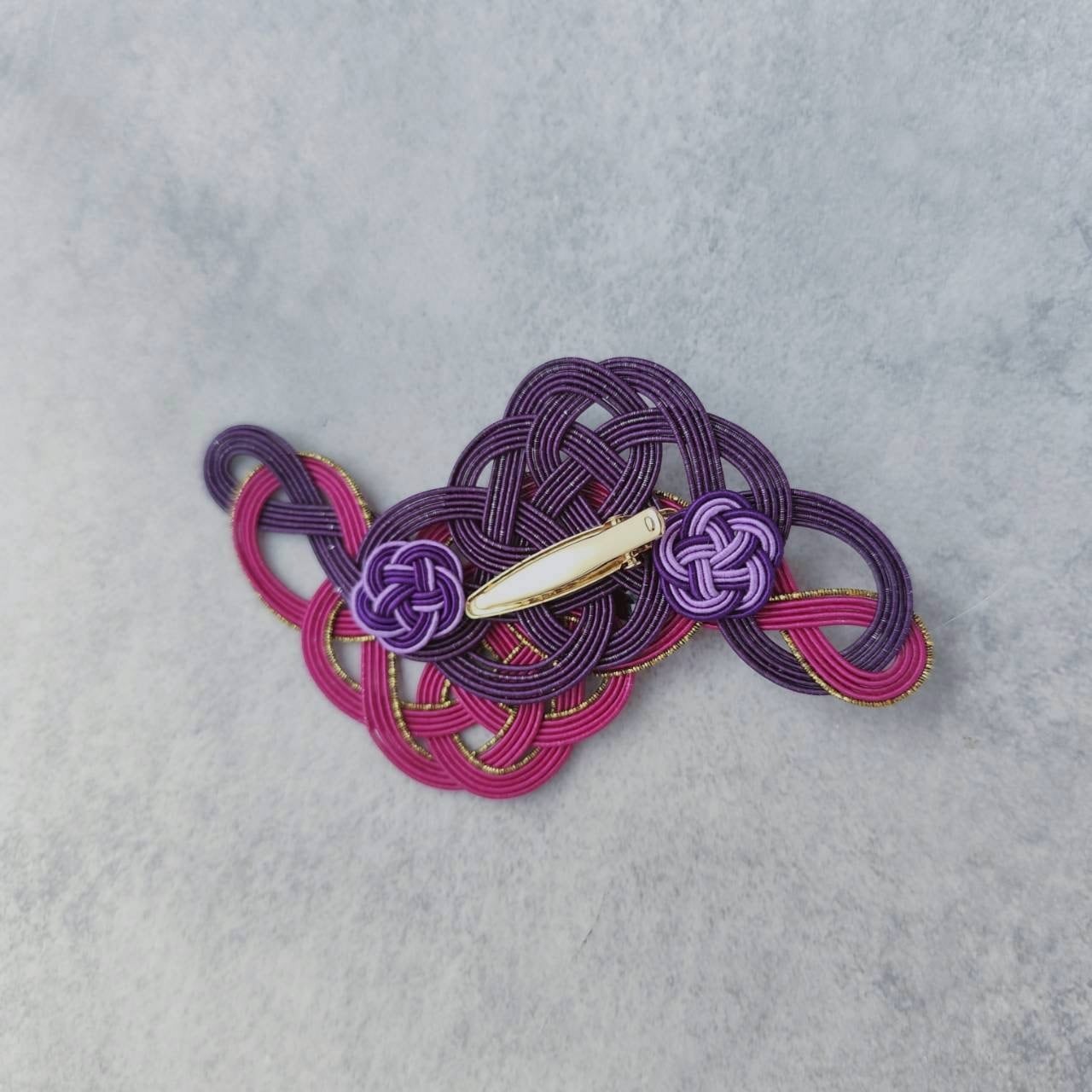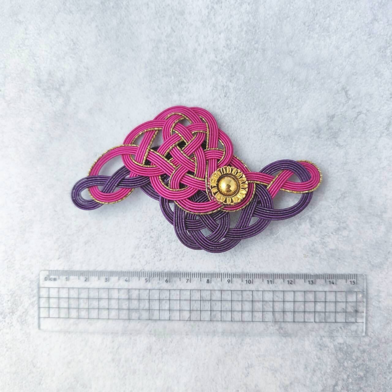 ⑦帯飾り・蔦(つた) / Wパープル チェコヴィンテージボタンと水引の帯飾り(2WAY)