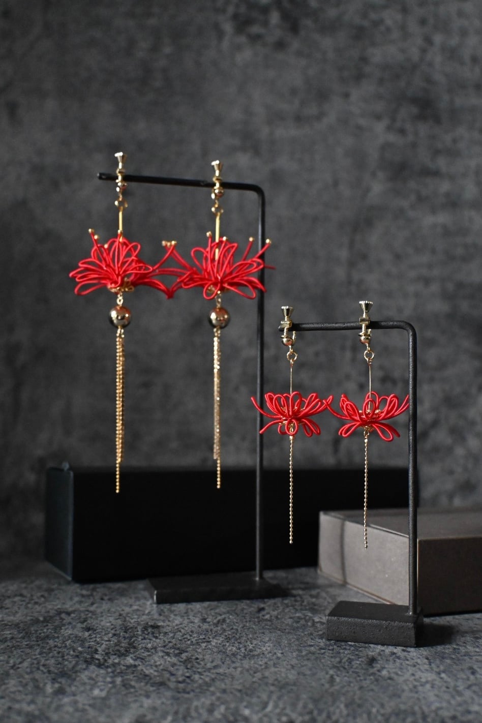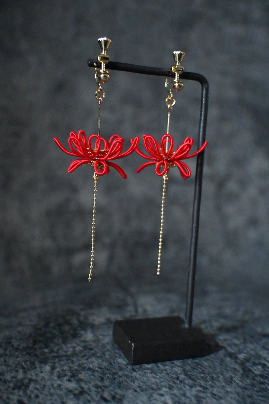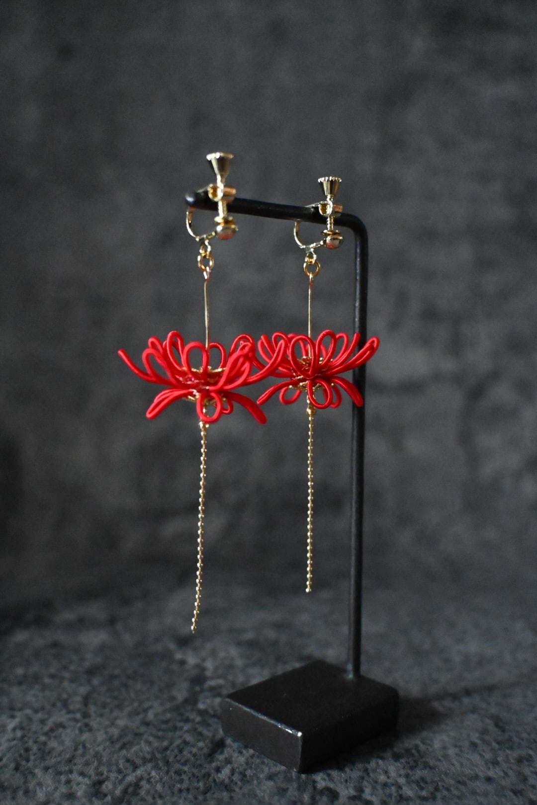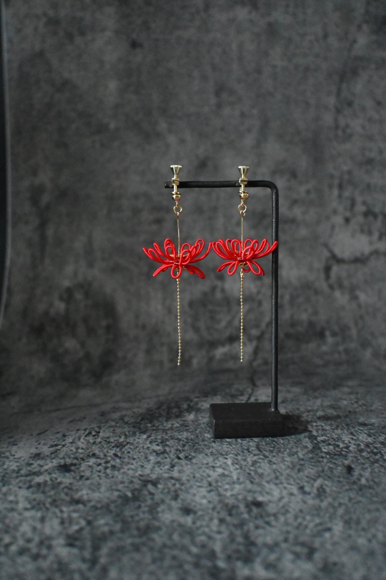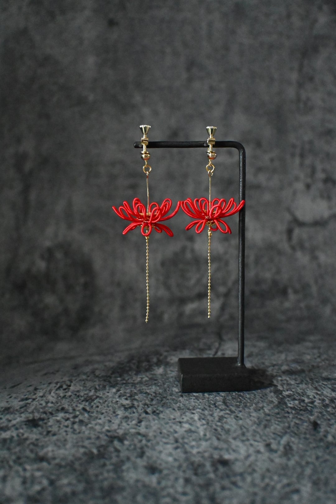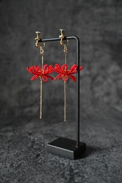 彼岸花の美しさを手元に宿す魅力的なイヤリングです。