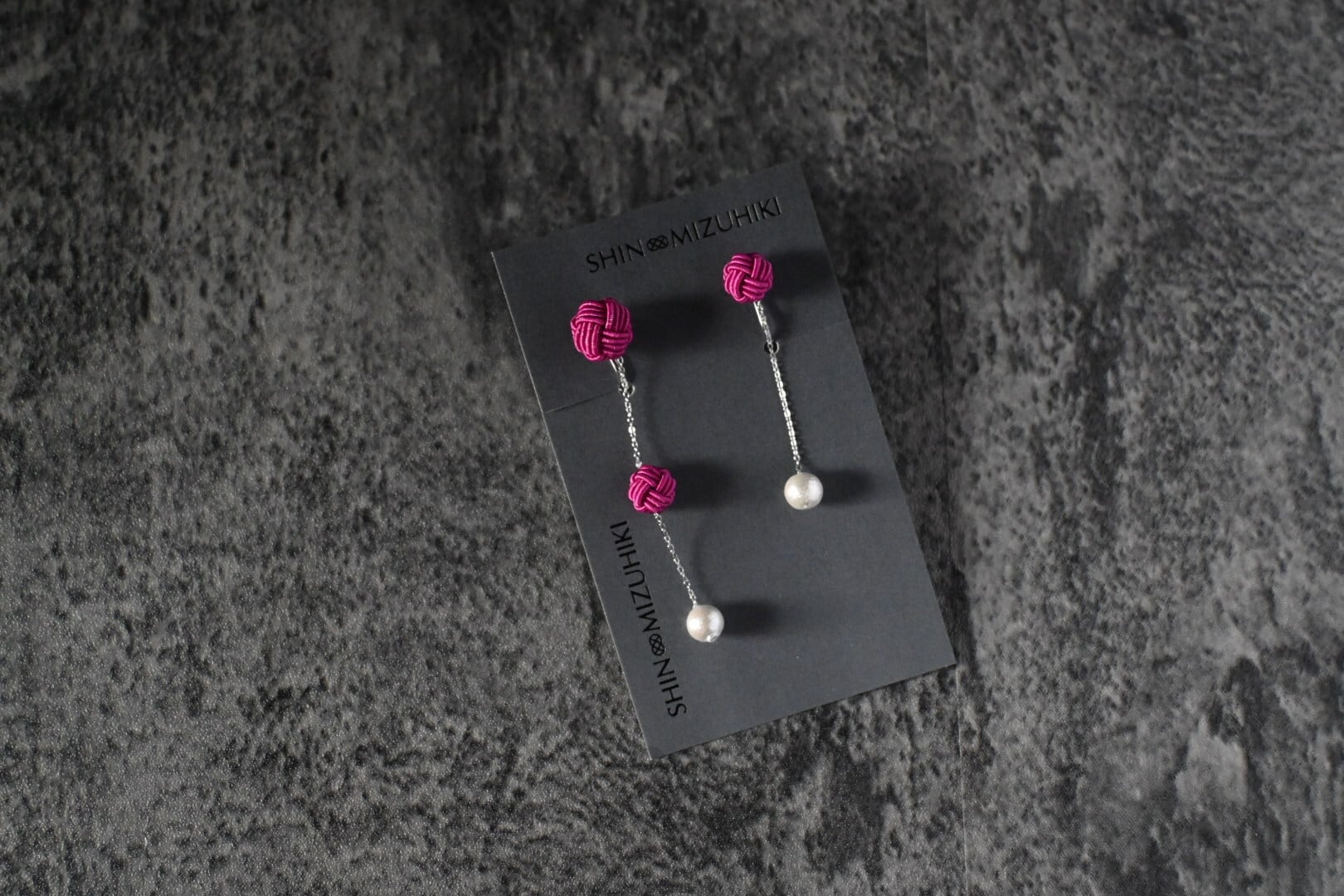 この耳飾りは、3色のカラーバリエーションをご用意しており、それぞれに異なる魅力があります。色合いは、パールと水引の美しいコントラストを引き立てつつ、優しいトーンでしっかりとした存在感を放ちます。一味違うアクセサリーを楽しめること間違いなしです!